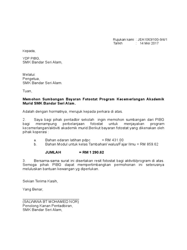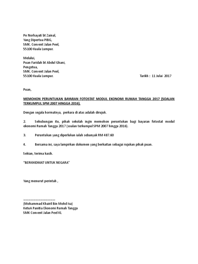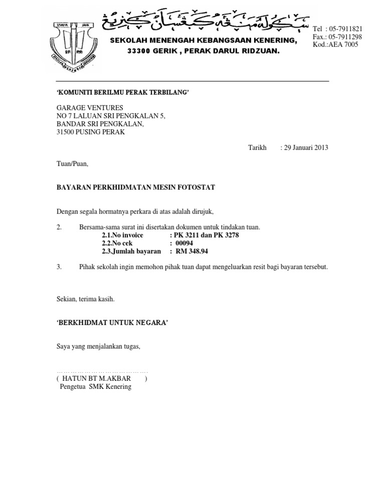 Contoh Surat Bayaran Fotostat